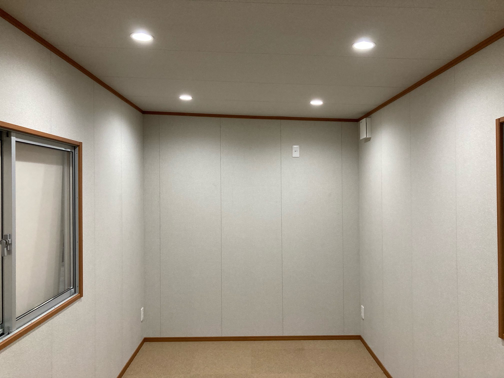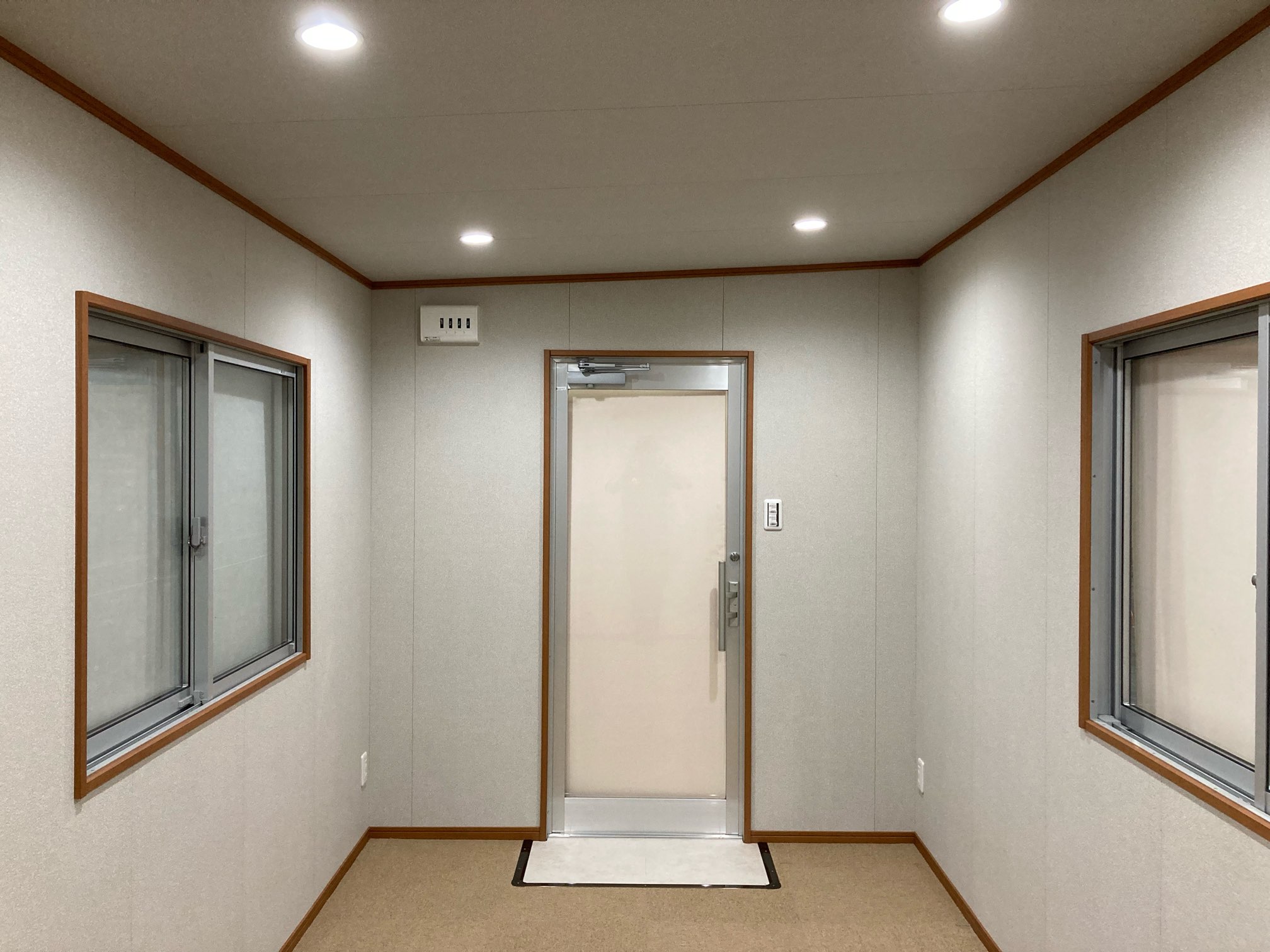 【内部】壁・天井:プリント合板(KU-210) 床:タイルカーペット(サンゲツNT363) 造作材:大建(MT)