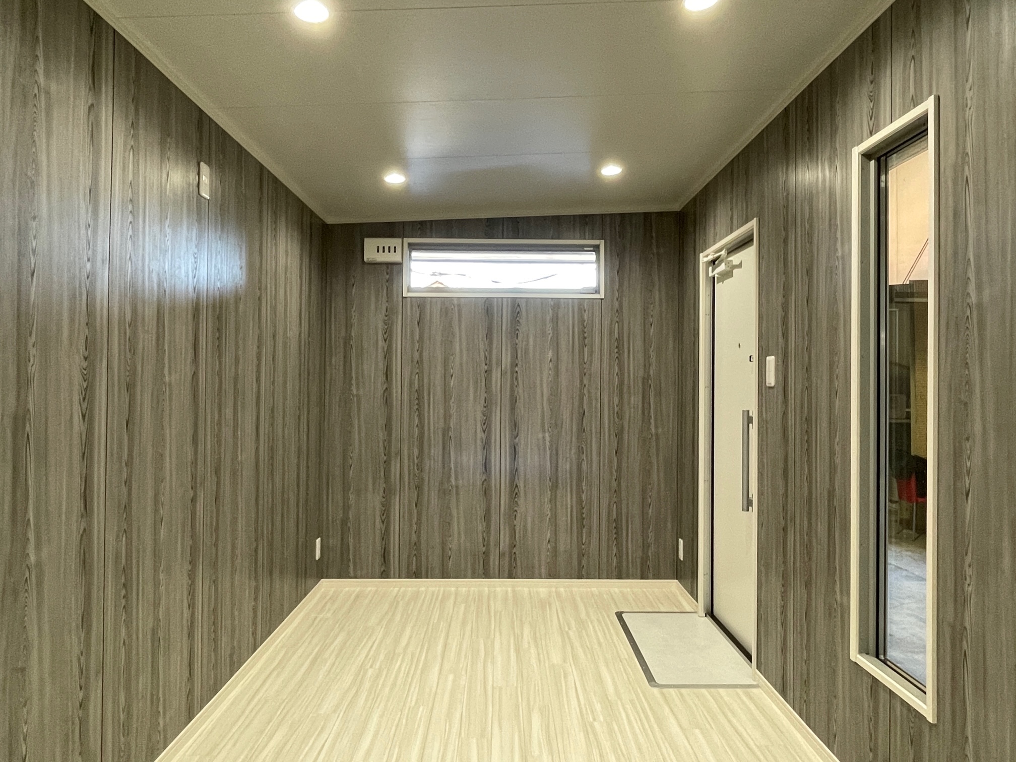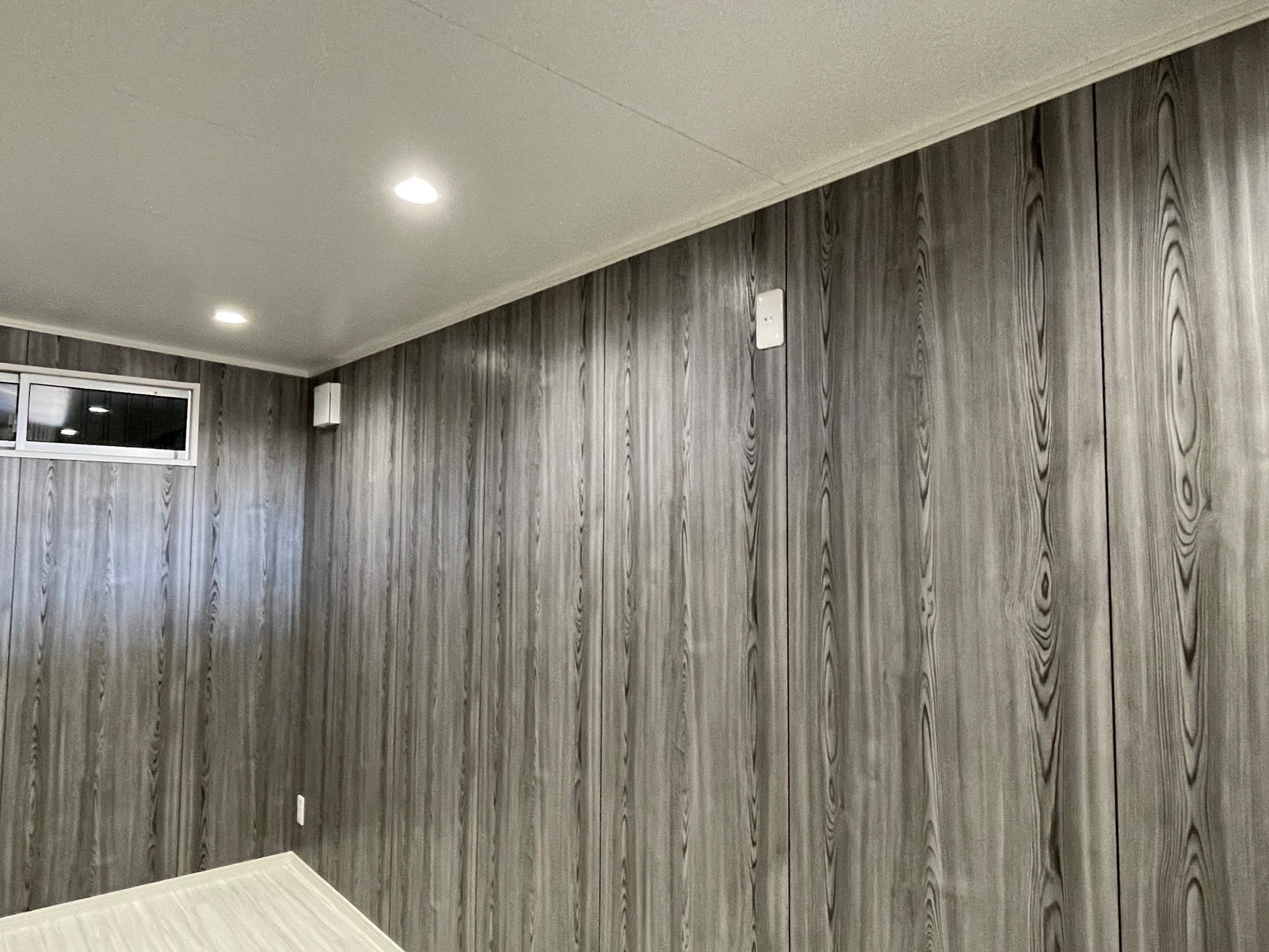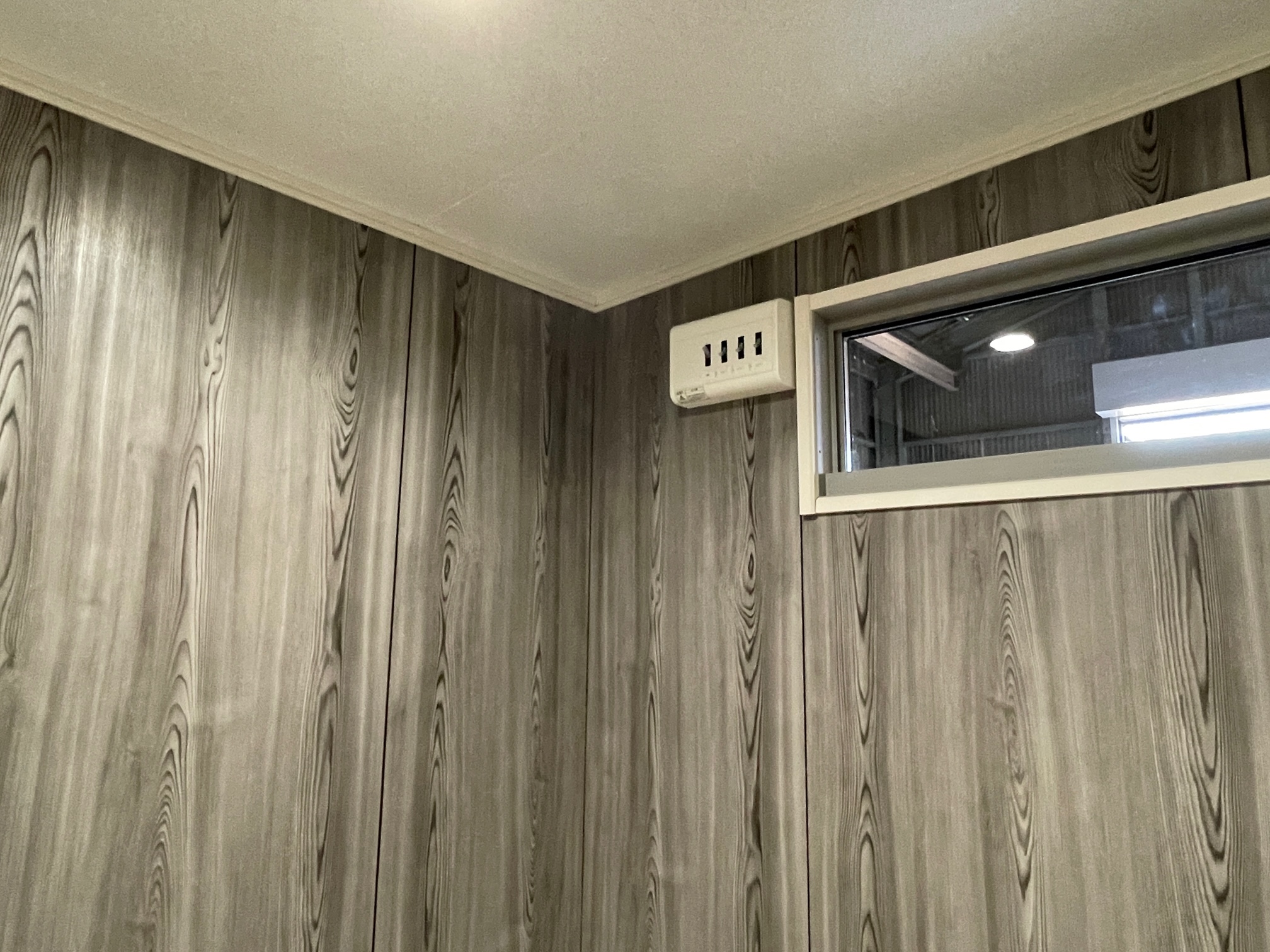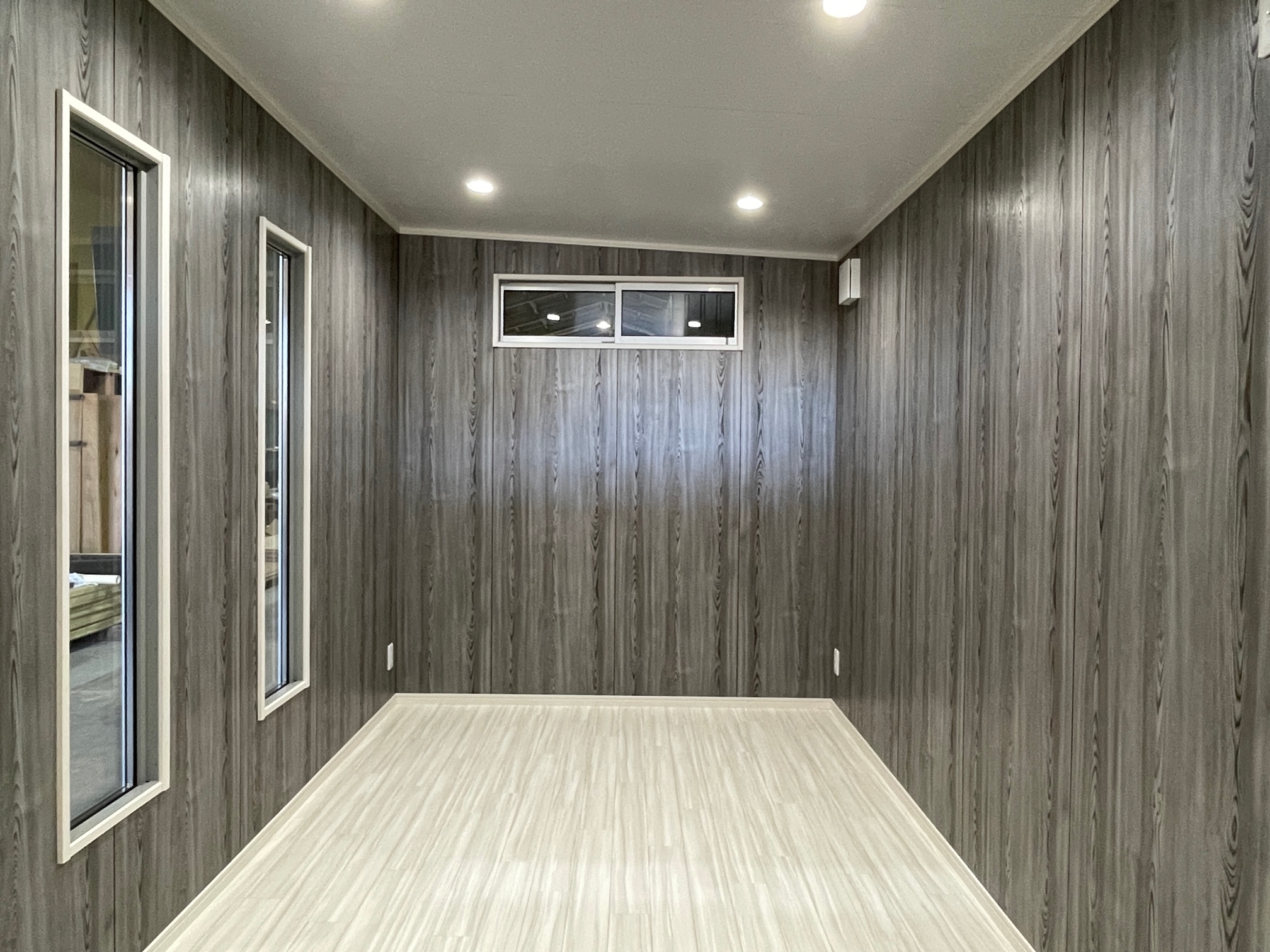 【内部】壁・天井:プリント合板(IS-47・P-22) 床:クッションフロア(サンゲツHフロア11060) 造作材:大建(TH)