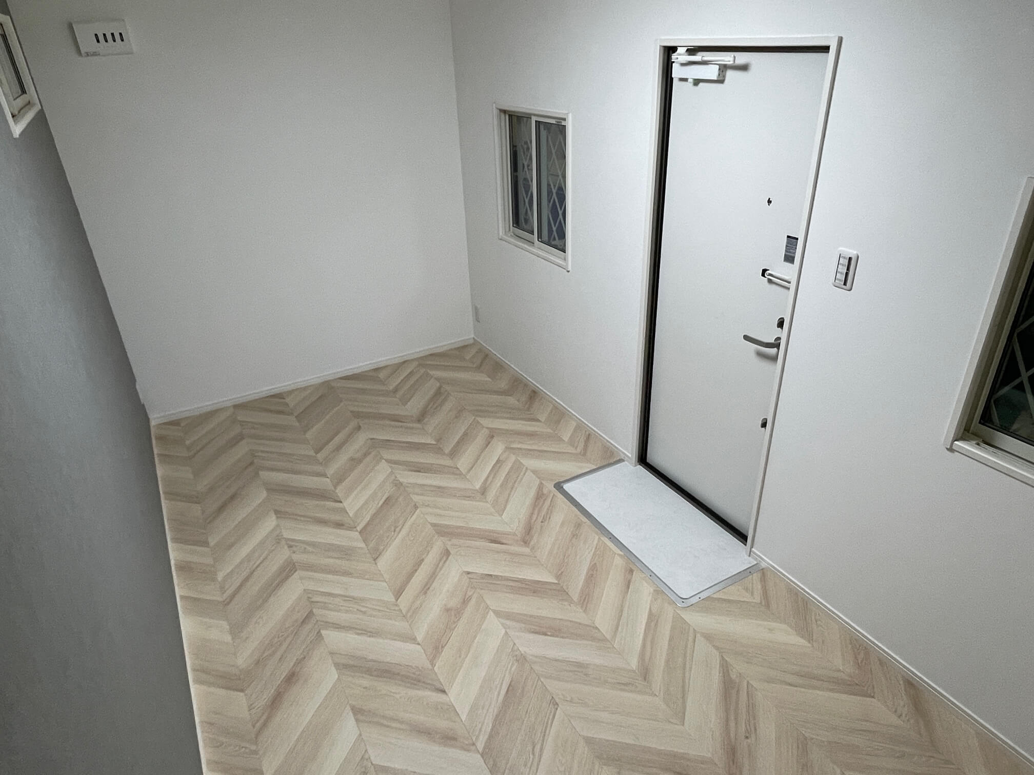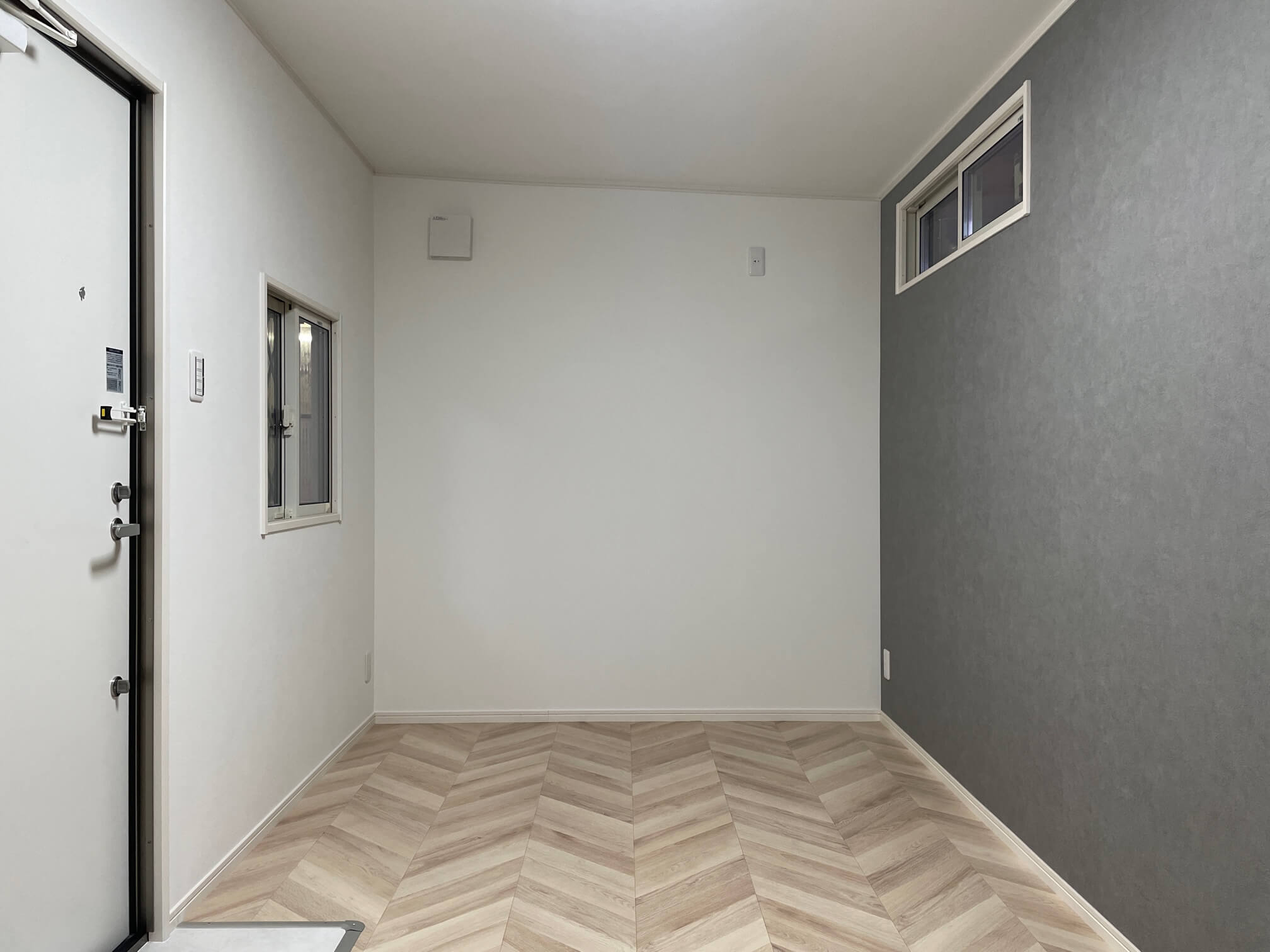 【内部】壁・天井:ビニールクロス(サンゲツSP2828・RE53661) 床:クッションフロア(サンゲツHフロア10014) 造作材:大建(TH)